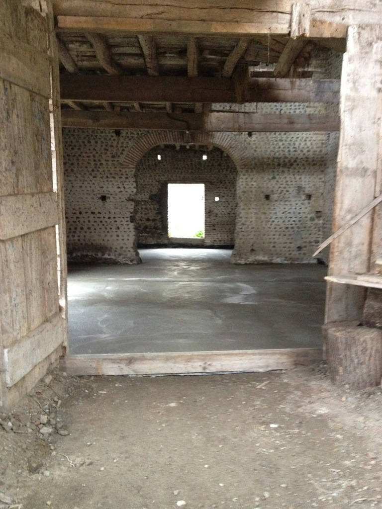 So where are we at with this house? We’re having people to stay so it must be quite close to being done right? Well. Here is the thing. Bits of it look nice. The bits I’ve shown you. The kitchen, one bathroom, two and a half bedrooms and the barn now has a floor. (Mr Landauer the gardner came with gallons of cement, tonnes of gravel and excitingly for the male members of the house – a digger/tractor thing *technical term)