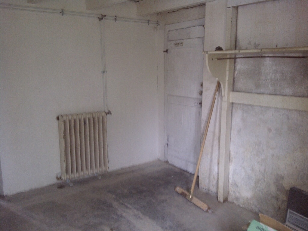 This is going to be a guest room. It has the finished bathroom attached to it and at the moment you have to walk through this to get to the bathroom. Note it DOES have a radiator. Not quite hooked up yet. I might let Pete explain the heating to you all – it is beyond me! This room once had a loo in the corner of it so at least that has gone to the dechetterie (french for tip) and it has had a coat of white paint by this stage – it WAS worse than this at one point!