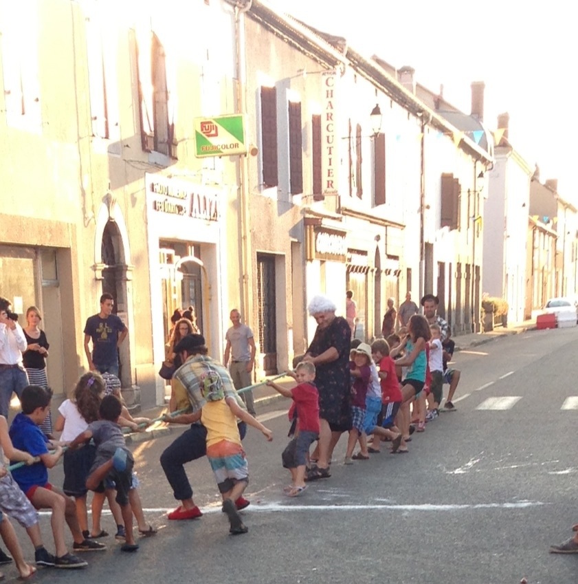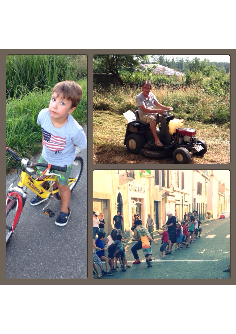There are slot machines, coin slide machines (where Sebastian hit the jackpot and thought he was James Bond when presented with a watch as a prize) and there is food – loads of it. Candy floss as big as your head, crepes, popcorn and ice cream. And local children are allowed to stay up as late as they like and the adults get stuck into the wine. And at some point in the evening, burley men, dressed as women encourage the local children to join them in a giant tug of war competition. And for the first time ever this year, our children elected to join in. And as we watched them grab the rope on opposing sides with dozens of French children of different ages, laugh, fall over and speak the universal language of silliness, we remembered one of the reasons we took on this crazy project.