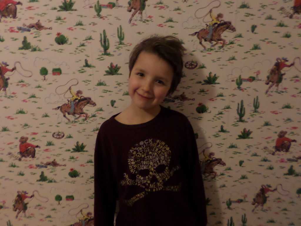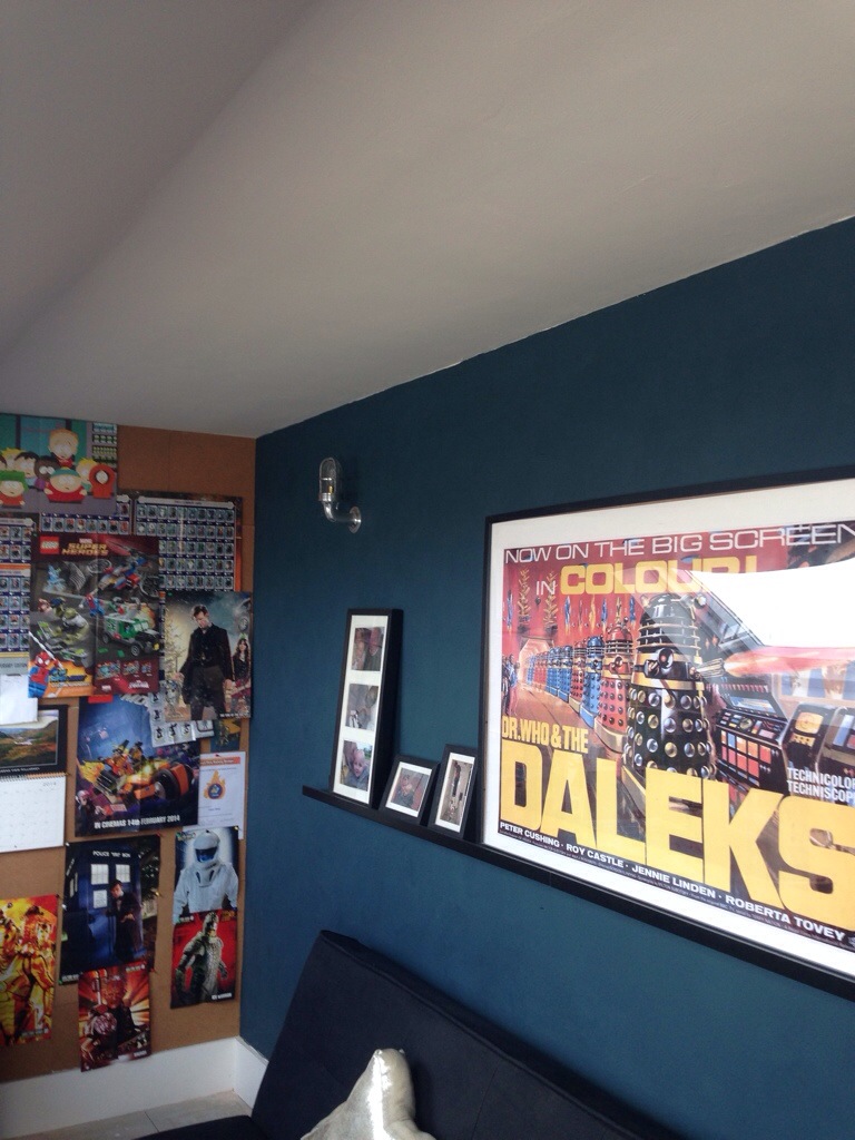 Seb has a magnetic board with minecraft magnets so he can put up posters etc while Arthur has a whole wall made of cork tiles to pin his various Dr Who related stuff.