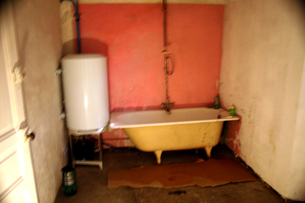In the case of my downstairs bathroom the bath was the thing that had to stay. It was in the room when we moved in but had slime and quite possibly an ecosystem living in it. There were vines and creepers growing through the window of this room and it had a concrete floor and falling down walls.